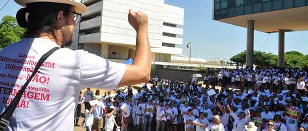 Técnicos e auxiliares em enfermagem do Distrito Federal estão em votação para o início da greve a partir desta quinta-feira (15). Eles saíram da Câmara Legislativa do DF e seguem em passeata no sentido do Palácio do Buriti. No ato, organizado pelo Sindicato dos Auxiliares e Técnicos em Enfermagem do Distrito Federal (Sindate-DF), profissionais reivindicam a incorporação no vencimento e o pagamento da última parcela da gratificação sancionada pelo ex-governador Agnelo Queiroz, em 2013, na Lei de Diretrizes Orçamentares para o exercício financeiro de 2014.