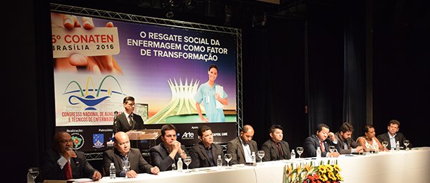 Estiveram presentes na mesa de abertura oficial do evento o presidente da Associação Nacional dos Auxiliares e Técnicos de Enfermagem, Antônio José da Costa; o presidente do Confen, Manoel Neri; O Diretor da Anaten-DF Magno Barbosa; o presidente do Coren-DF, Gilney Guerra; o vice-presidente do Sindate-DF, Jorge Viana e o Coordenador Geral do 5º Conaten, Adriano Araújo.