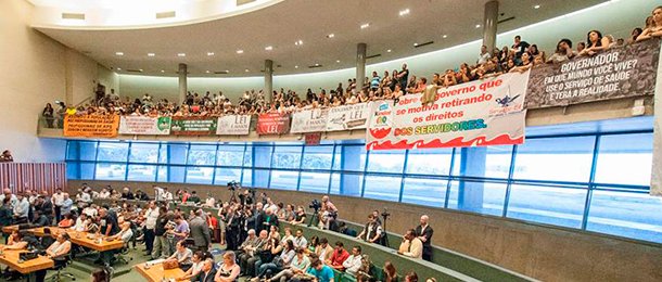 Servidores da Secretaria de Saúde usaram a galeria da Câmara Legislativa, nesta quinta-feira (9/3) para protestar contra mudanças na atenção primária e a supressão de direitos, como a alteração nas gratificações por titulações.