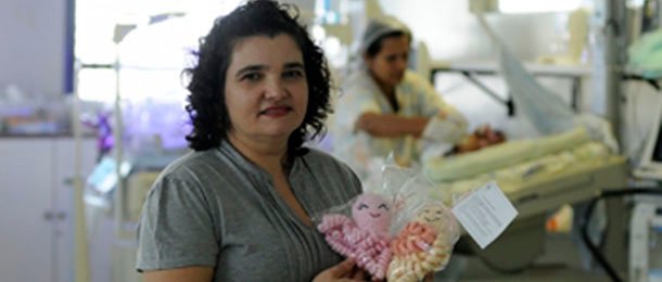 Janeta Brito, que faz parte do grupo nas redes sociais, produziu 17 unidades para doar. “Divido meu tempo com a família e, agora, com a produção dos polvos. Aprendi a fazer crochê na infância. Faço dois bichinhos por dia. Quem não sabe produzir pode doar linha e agulha”, disse. “Esse trabalho é muito gratificante, porque sempre quis ajudar voluntariamente em alguma iniciativa. É muito bom saber que meu trabalho manual está contribuindo para um bebê sair de uma situação crítica”, completou.