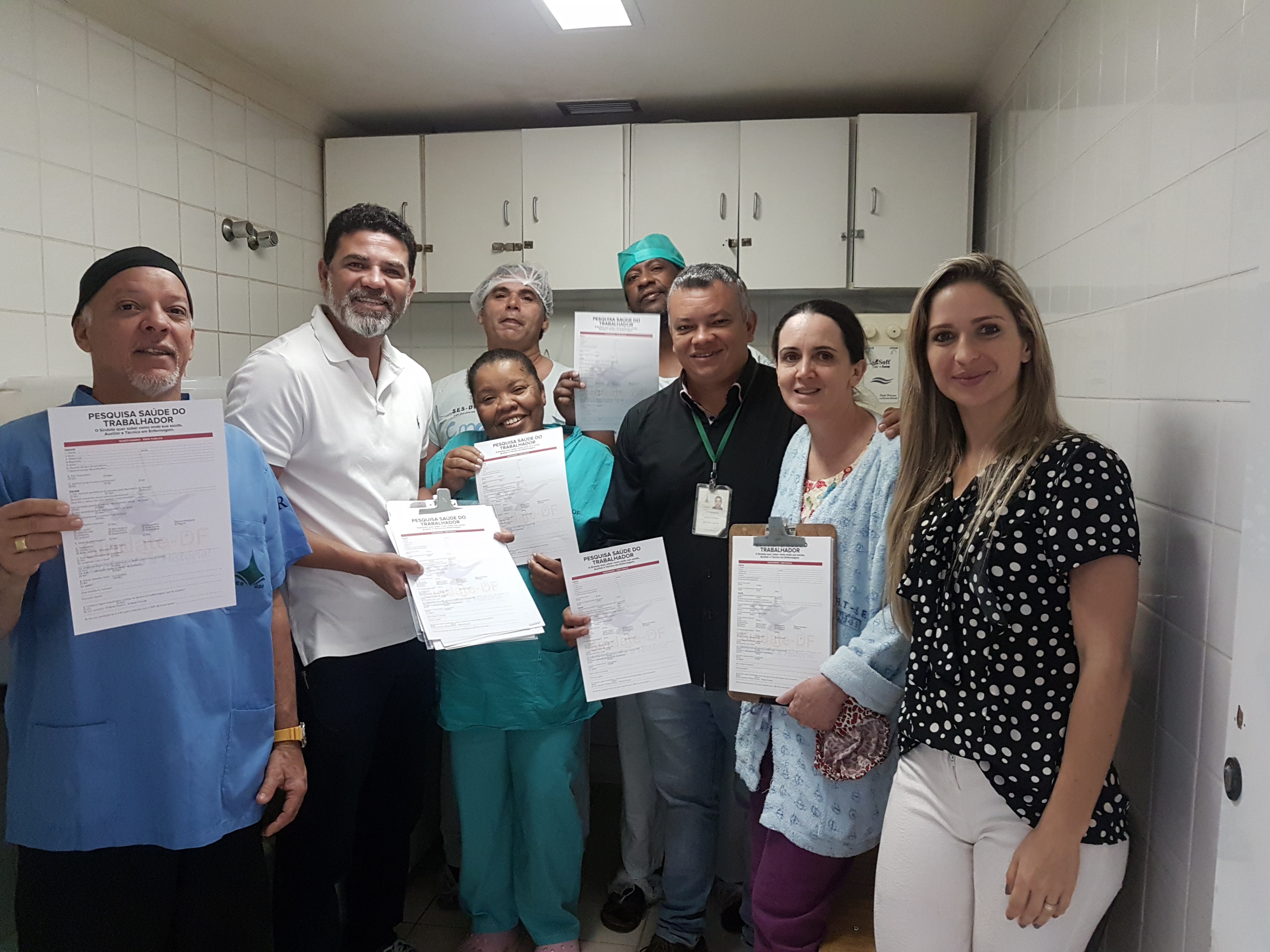 Diante da sobrecarga dos servidores da saúde o Sindate continua com a execução da pesquisa saúde do trabalhador nas regionais. Foi entregue para preenchimento, os formulários da pesquisa saúde do trabalhador, de forma a efetivar o levantamento de dados, também dos funcionario do HRT.