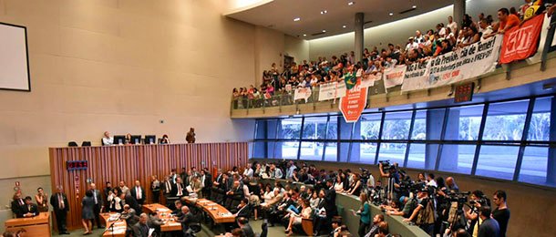 Para o vice-presidente do Sindate-DF, Jorge Viana, hoje vai ser mais um daqueles dias que vai ficar para história, marcando de forma negativa a Câmara Legislativa e o Governo que mexeu em algo sagrado que é a previdência dos servidores. “Esses servidores trabalharam e estão trabalhando para ter a garantia de se aposentar. Nós não temos fundo de garantia, a nossa única garantia era nossa aposentadoria de forma integral, e até isso agora nos foi tirado. Nossa aposentadoria foi colocada em risco, espero que ninguém esqueça disso”, declara Viana.