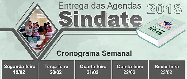 Nesta semana, a equipe de divulgação do Sindate estará entregando as agendas nas regionais do Gama, Samambaia, Taguatinga, Paranoá, Asa Sul e Asa Norte, alem das Unidades Básicas de Saúde do Recanto das Emas, Riacho Fundo I e II, Bandeirante, Guará, Taguatinga, Gama e Santa Maria.  O cronograma das equipes está sendo divulgado semanalmente no site em todas as mídias sociais do Sindate.
