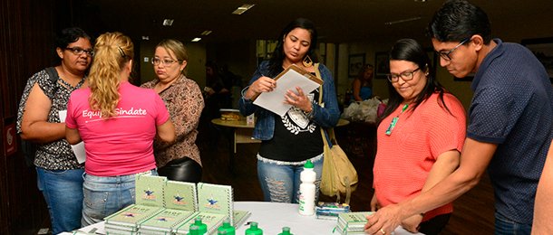 Mais uma vez, como de costume, a direção do Sindate compareceu ao Curso de Acolhimento dos novos servidores da Secretaria de Estado de Saúde do DF (SES-DF), realizado nos dias 10 e 11 de maio, do Auditório DNIT, para conversar com os profissionais e entregar a Cartilha de Acolhimento elaborada pelo sindicato.