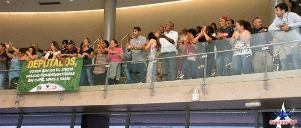 Na tarde da ultima terça-feira (18/09), a direção do Sindate juntamente com a categoria participaram da votação para aprovação do projeto de lei nº 2.110/2018, da deputada Celina Leão (PP), que altera a Lei que reestruturou a carreira de Assistência à Saúde e passa a conceder aos servidores de CAPS, UPAS e SAMU as folgas em feriados, conforme já garantido nas demais unidades hospitalares. O projeto foi aprovado em 1º e 2º turno na presença de 14 deputados.