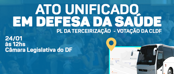 A direção do Sindate-DF convida toda a categoria para comparecer à Câmara Legislativa, nesta quinta-feira (24), a partir das 13h, para mobilização contra o PL da terceirização, proposto pelo Governo, que será deliberado pelos distritais em sessão extraordinária.