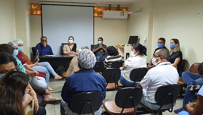 Durante a reunião, a superintendente da Região de Saúde Oeste, Dra. Lucilene Florêncio, destacou, como forma de dar andamento no fluxo da assistência, a importância de uma comunicação integrada das chefias imediatas com os trabalhadores. Medida reforçada pelos diretores do sindicato. Quanto à escala, Florêncio pontuou a necessidade dos servidores notificarem a supervisão de enfermagem com antecedência sobre eventuais trocas de plantão e outras solicitações, com o objetivo seguir as escalas que constam no Trakcare (sistema unificado de informação de saúde) e de evitar problemas no registro do Forponto (sistema que registra o ponto eletrônico dos servidores).