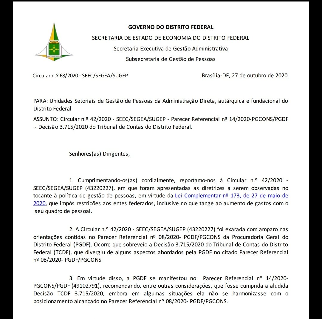 A mesma está amparada nas orientações contidas no parecer referencial nº 08/2020- PGDF/PGCONS. Que trata das suspensões de benefícios de qualquer natureza para os servidores. Porém, a PGDF orientou aos gestores que seguissem o entendimento do Tribunal de Contas do Distrito Federal (TCDF).