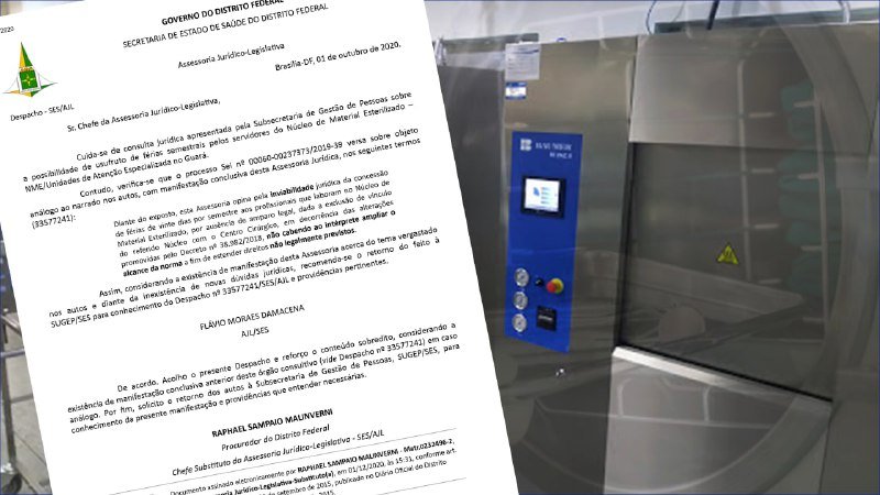 De acordo com o documento publicado pela AJL, após consulta jurídica apresentada pela Subsecretaria de Gestão de Pessoas (SUGEP) sobre a possibilidade de usufruto do benefício pelos trabalhadores do NME, a Assessoria justificou que a decisão pela inviabilidade na concessão das férias se deu em virtude da exclusão do Núcleo de Material Esterilizado com o Centro Cirúrgico, em decorrência das alterações promovidas pelo decreto nº 38.982/2018, em que alterou a estrutura administrativa da SES.