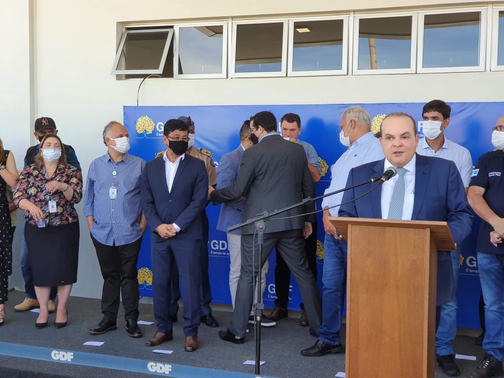 O Governo do Distrito Federal inaugurou, na manhã desta quinta-feira (21/1), o Centro de Cuidados Intermediários (UCI) do Hospital de Campanha de Ceilândia. A cerimônia de inauguração contou com a presença do governador Ibaneis Rocha (MDB) e do secretário de Saúde, Osnei Okumoto.