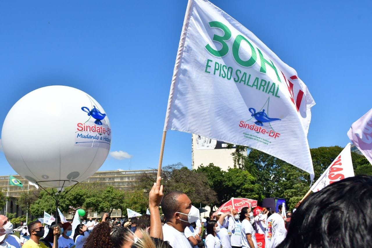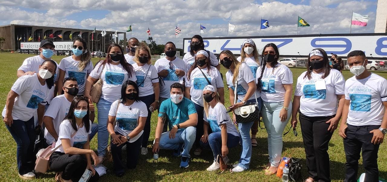 “A Marcha teve o objetivo de sensibilizar o Congresso Nacional para colocar como pauta de votação nosso projeto do Piso Salarial e das 30h semanais. A Enfermagem não aguenta mais, estamos sofrendo muito, é o mínimo que o Senado pode fazer por esses profissionais que cuidam da saúde do Brasil. Tivemos mais de 700 mortos nessa guerra contra o Covid”, explica a diretora do Sindicato dos Auxiliares e Técnicos em Enfermagem (Sindate) Josy Jacob.