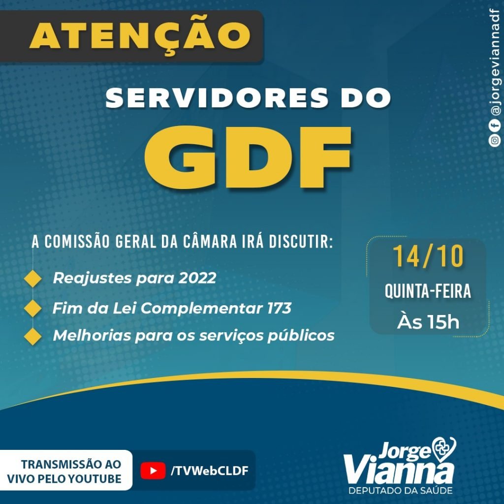 O deputado distrital Jorge Vianna (Podemos) promoverá na próxima quinta-feira (14/10) uma Comissão Geral sobre as demandas das carreiras e melhorias do serviço público.