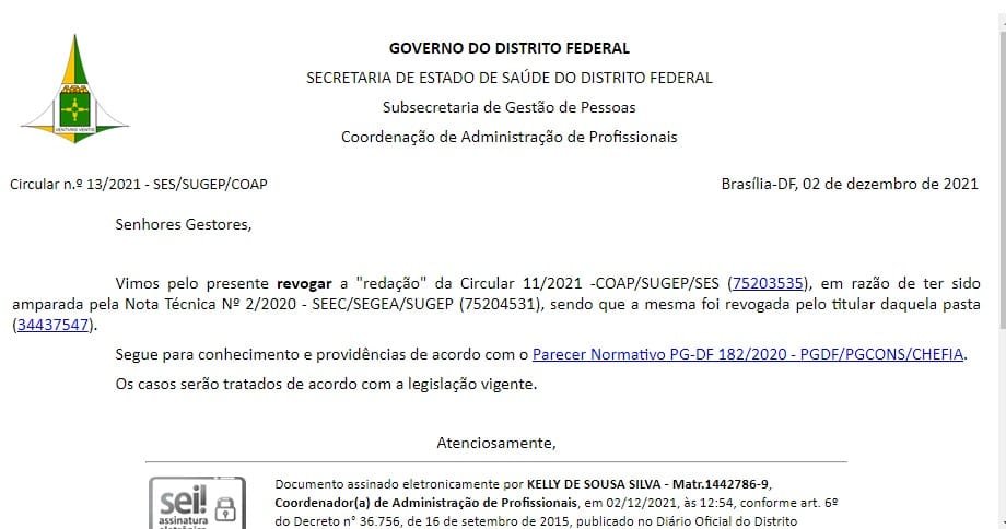 Contudo, nesta tarde a pasta voltou atrás e revogou a portaria. A anulação aconteceu por conta da antiga circular ser amparada pela Nota Técnica nº 2/2020, e ela já havia sido revogada anteriormente pelo secretário da Economia, André Clemente.