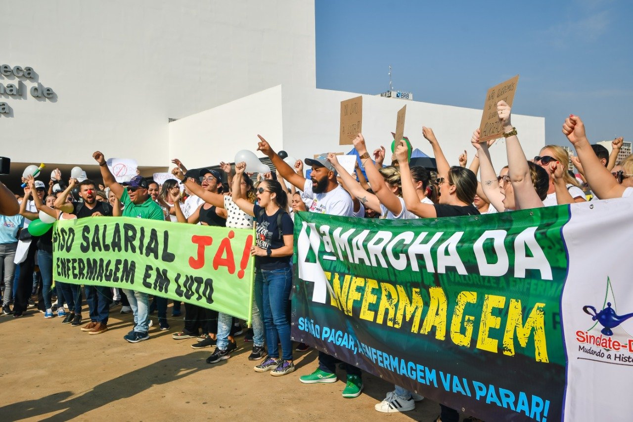 O Sindicato dos Auxiliares e Técnicos em Enfermagem do Distrito Federal (Sindate-DF) promoveu nesta quarta-feira (21/09) a 4ª Marcha da Enfermagem, que teve como objetivo mobilizar o Congresso Nacional para votarem o projeto que indica a fonte de custeio do Piso Salarial da Enfermagem.