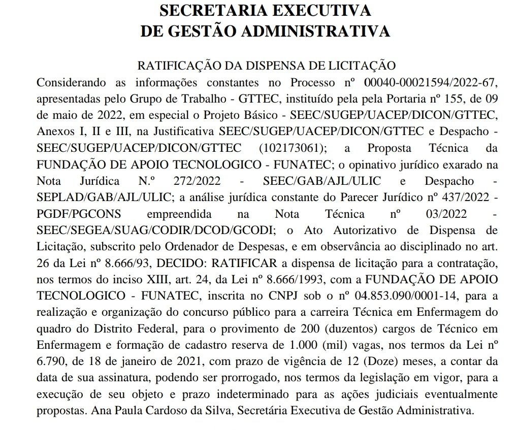 Nesta segunda-feira (26/12), foi publicado no Diário Oficial do Distrito Federal (DODF) a banca do concurso para os técnicos em enfermagem.