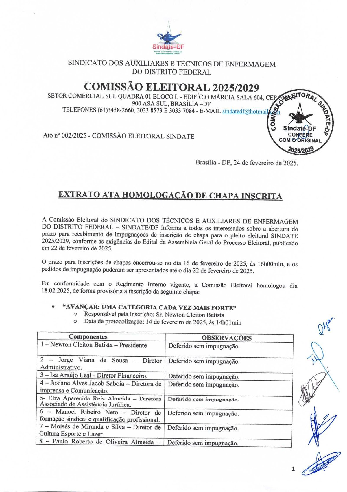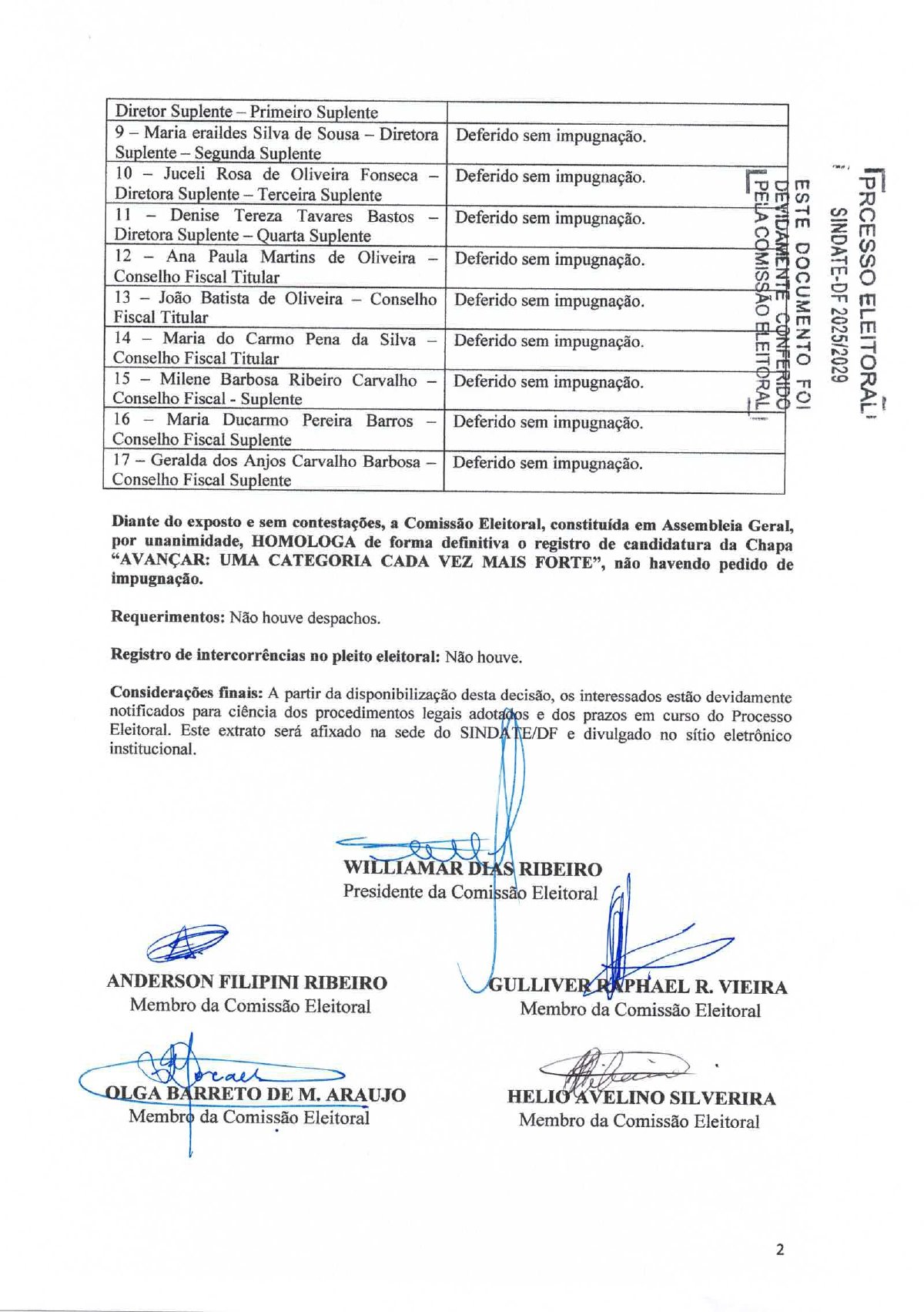 Comunicado – Comissão Eleitoral do pleito 2025/2029 – Sindate-DF