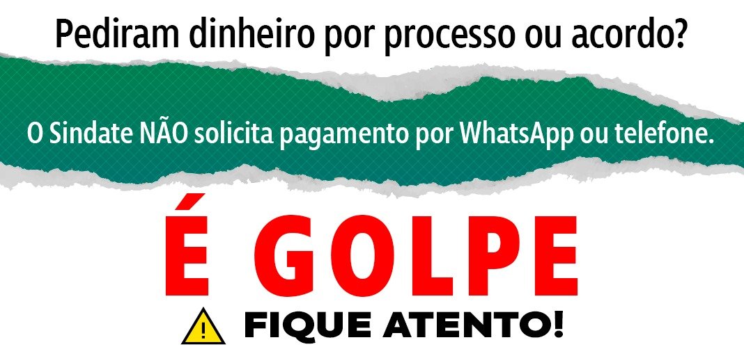 O Sindate recebeu denúncias de que golpistas estão se passando por advogados do sindicato para tentar extorquir trabalhadores com pedidos de depósitos em nome de supostos processos, acordos ou taxas judiciais.